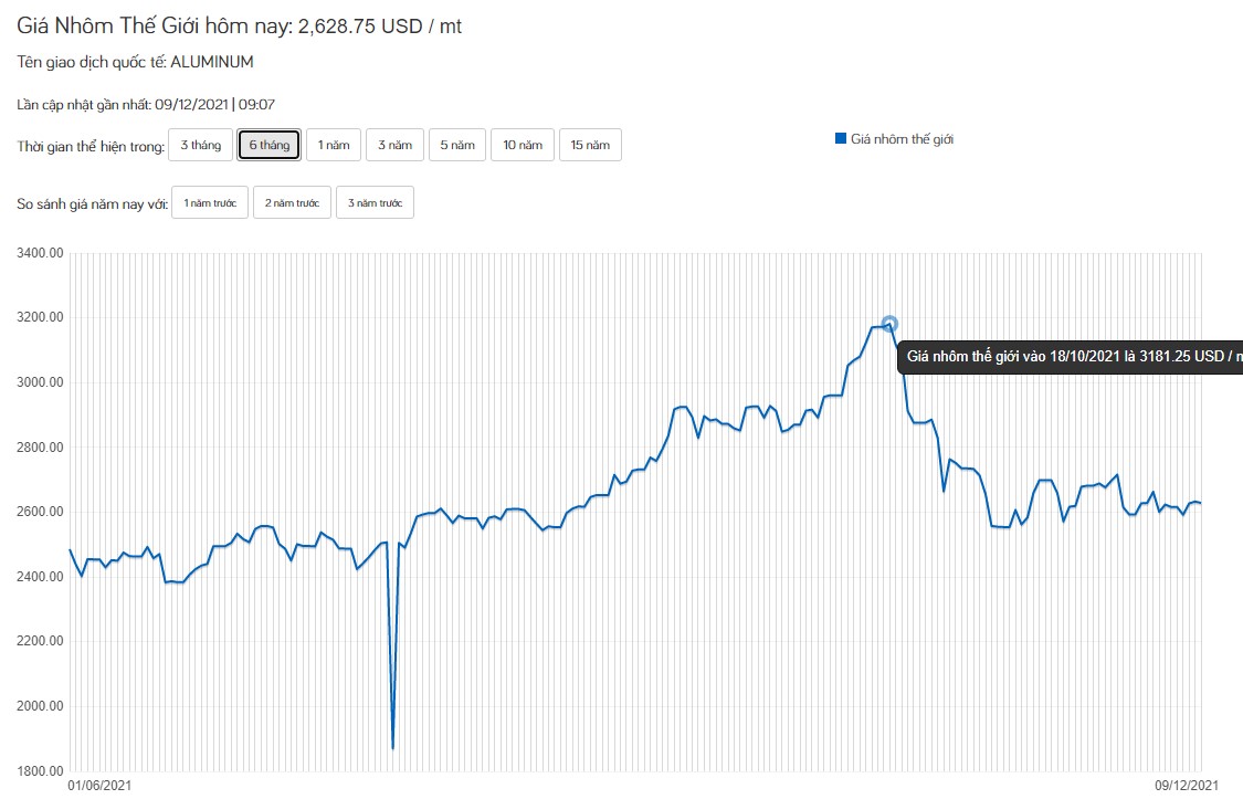 Giá nhôm 6961 cắt lẻ cuối năm 2021 là bao nhiêu?